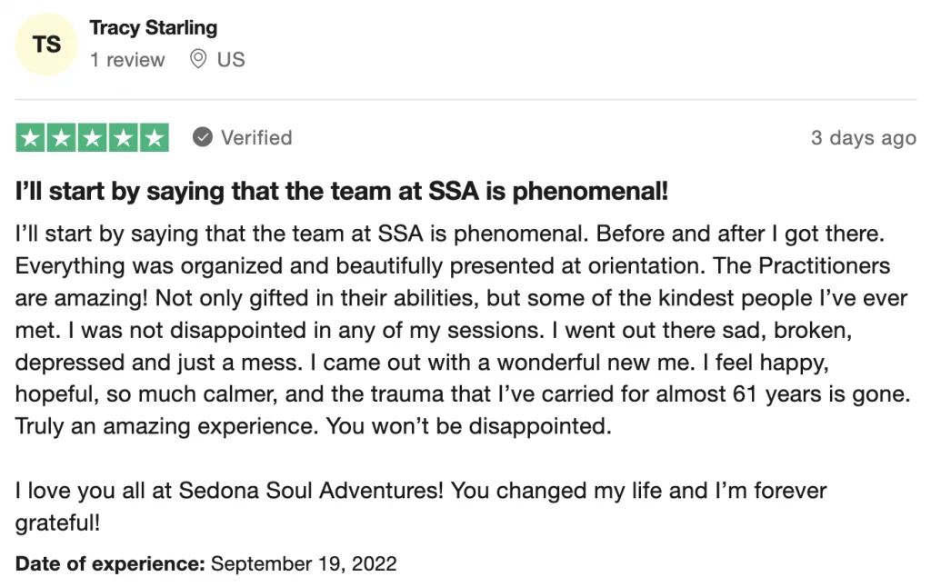 Trustpilot is a 3rd-party review service, meaning they verify that anyone who writes a review is actually a client and in this case, actually did a Soul Adventures retreat with us. If a company isn’t using a 3rd party service, they’re probably just making up the reviews they have on their website.