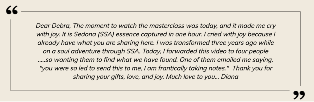In normal times, for Masterclasses such as these with our Practitioners, we would normally charge $197 for each class. But of course, these aren’t normal times. So we’ve brought the price down to $197 for the entire series and as a gift to you, our loyal Sedona Soul Adventures subscribers, we’re giving you the promo code transform, which brings the price down to $97 for the entire series. That comes out to be less than $5 per Masterclass.