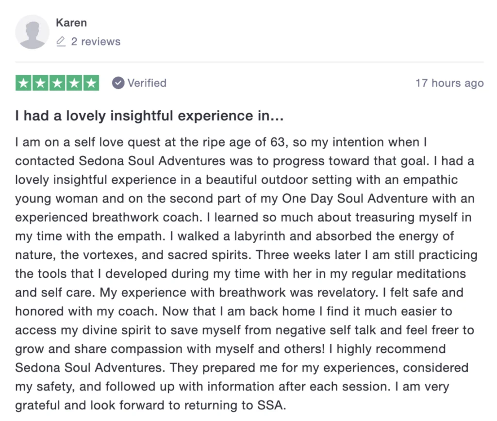 But I have to tell you, people are having incredible things happening with their One Day Soul Experiences. Karen came here 3 weeks ago and read how she is still feeling the transformations: