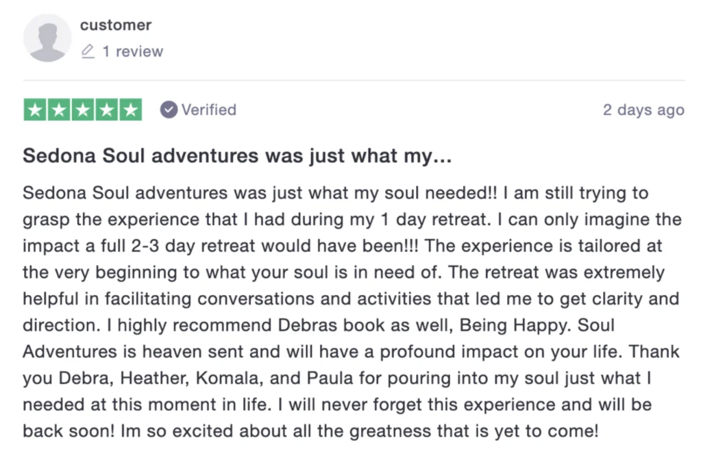 We just started doing our One Day Soul Experiences this year and they have been nothing short of amazing! Of course, if you want your life completely 1000% transformed or your marriage saved, that definitely requires our full blown Soul Adventures which are 3-4 days.
