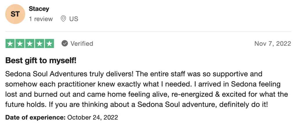 Stacy says, “I arrived in Sedona feeling lost and burned out and came home feeling alive, re-energized and excited for what the future holds”