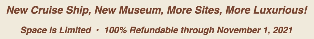 If you already know you want to go, Click here to place your Risk Free Deposit. What is a Risk Free Deposit? Your deposit is 100% refundable for any reason, no questions asked, through November 1, 2021.