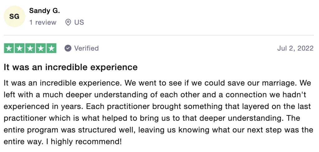 Sandy says, “We went to see if we could save our marriage. We left with a much deeper understanding of each other and a connection we hadn’t experienced in years.”