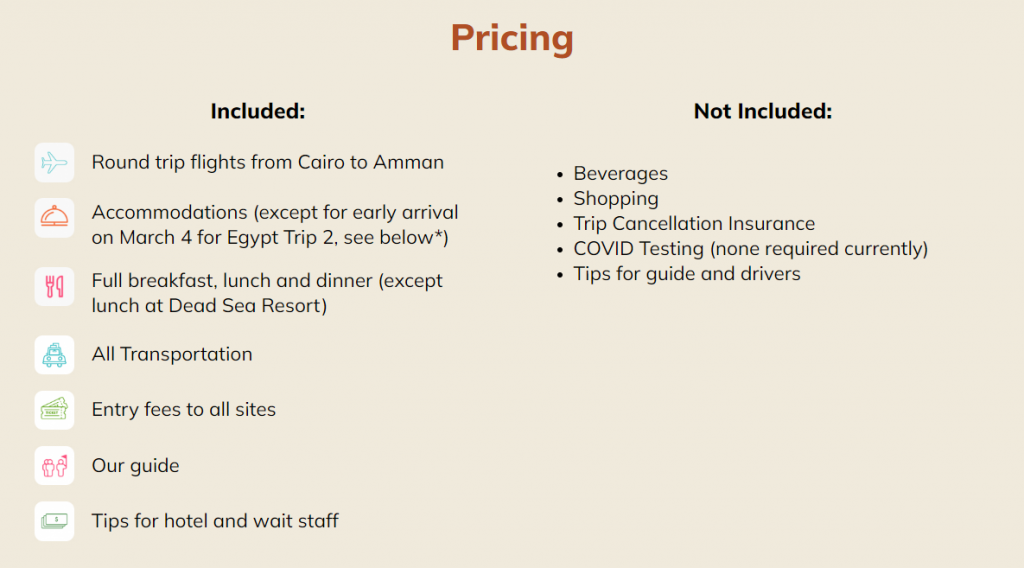 Please note: The Jordan add-on is an add-on to either the First Egypt trip or the Second Egypt Trip, it is not a separate trip.