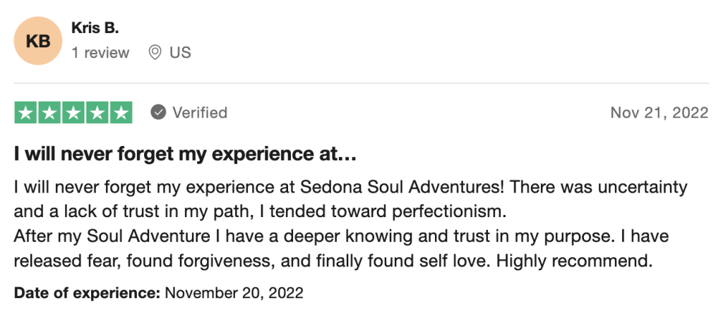 Kris says, “After my Soul Adventure I have a deeper knowing and trust in my purpose. I have released fear, found forgiveness, and finally found self love.“