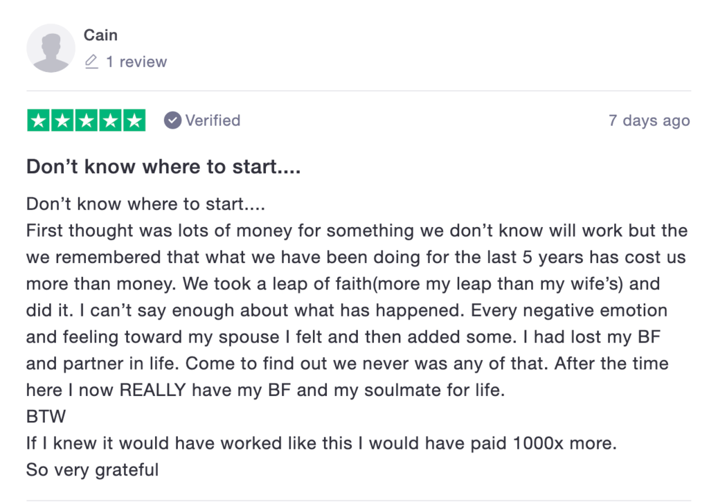 Either way, let us work our magic with your relationship – It’s incredible what can happen. Even after all these years and all these thousands of people, I’m still amazed at what happens.