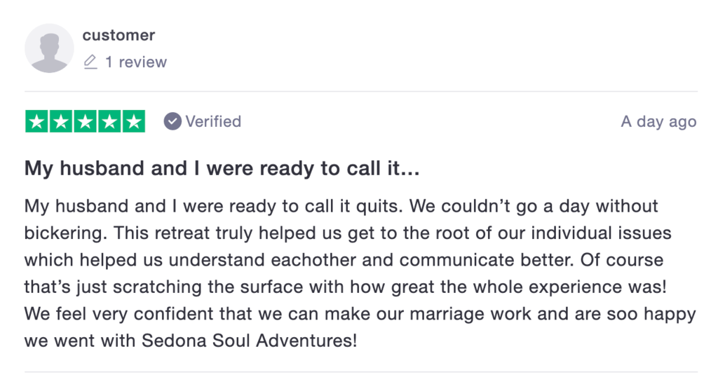 I think many of you know that I was a divorce attorney for over 20 years before I started Sedona Soul Adventures. One of the things that I’m proudest of is that I’ve now spent the last 20 years helping people stay together. And these past few weeks have just been so incredible and such a testament to the work we do.