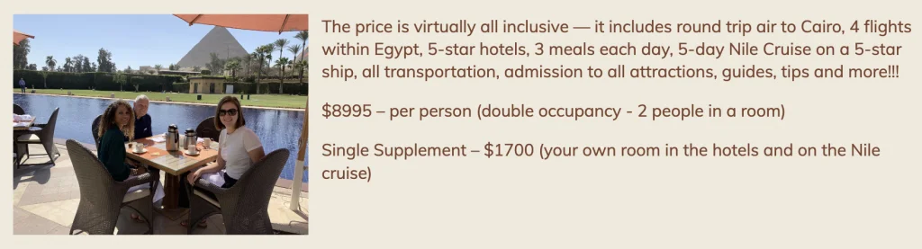 Just a few spots left for our “Return To Egypt” Tour March 9-22