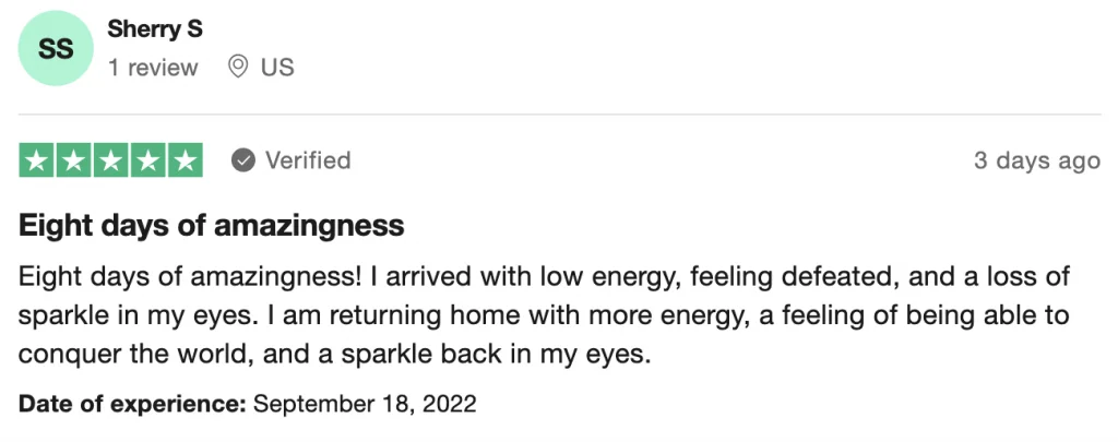 Trustpilot is a 3rd-party review service, meaning they verify that anyone who writes a review is actually a client and in this case, actually did a Soul Adventures retreat with us. If a company isn’t using a 3rd party service, they’re probably just making up the reviews they have on their website.